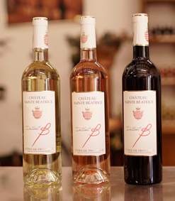 commerciale de "château". Ce domaine a été créé à partir de 1975 par Jean Novaretti, ancien restaurateur monégasque (ce qui explique le blason à losanges, emblême de Monaco, qui se trouve sur les bouteilles) et continuellement agrandi par l'achat et la plantation de terrains et la construction de bâtiments et d'installations viticoles. Ont peut voir sur place une exposition de vieux tracteurs et une belle collection d'objets et d'outils anciens autour de la vigne, de la tonnelerie et de la cave . En mai 2016 la famille Novaretti a vendu le domaine de Sainte-Béatrice à Valérie Rousselle propriétaire de Château Roubine. Site web: www.sainte-beatrice.com |