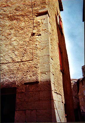 <--- Angle en pierres de taille avec date gravée au sommet et pierres avec marques de tâcheron.