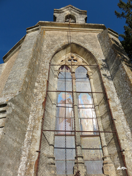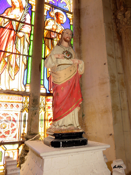 Les deux saints de la façade ( Ste Foy et St Jacques) se retrouvent sur le vitrail ornant le choeur.