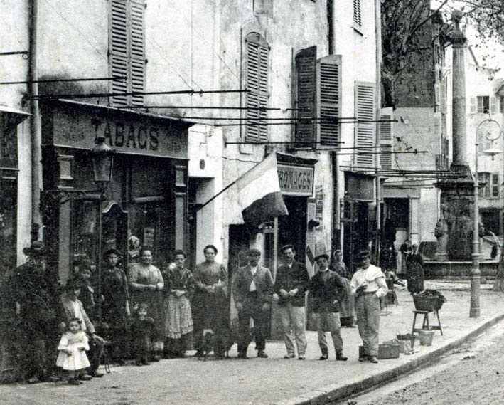 A droite du bar-tabac, la fromagerie Eugénie Pisan qui deviendra plus tard la mercerie Maguy Viton