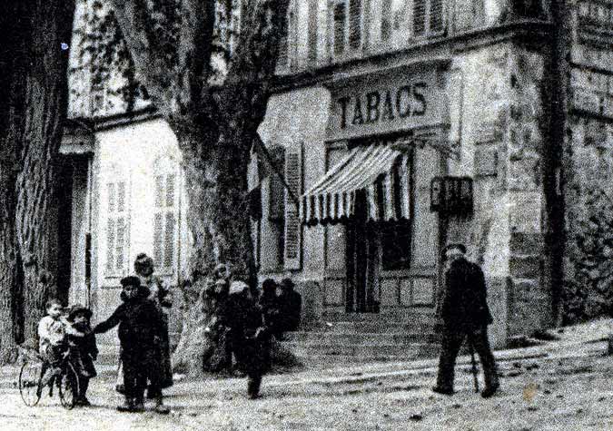 Bar-tabac MOTUS au coin de la rue des Moulins (actuelle rue du Dr Cordouan) et du Cours.