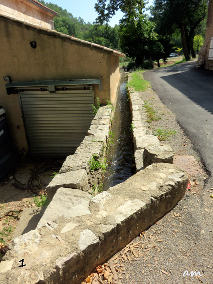 | Au domaine de la Martinette, le canal qui passait derrière les bâtiments ( photo1) a été dévié en 2013 lors de la restructuration du château effectuée par les nouveaux propriétaires, il passe aujourd'hui devant la propriété (photo2) | |