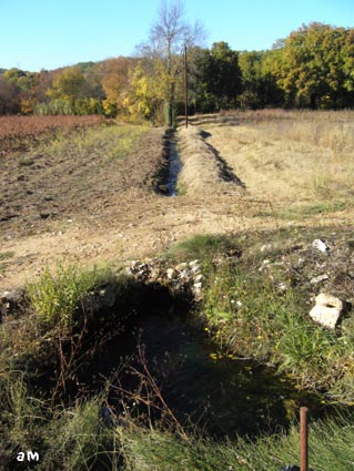 Après avoir longé le Plan de la Vache, au fond en bordure des terres, le canal quite son cours, traverse le chemin par un petit ouvrage datant de 1927 et retourne 100 mètres plus loin dans l'Argens