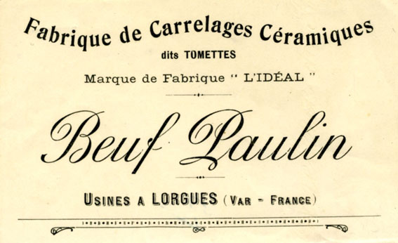 Probablement carte d'un courtier ou représentant qui vendait les tomettes " L'IDÉAL" de l'usine Esberard.