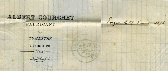 Lettre Albert Courchet 1876. En-tête Louis Marie Courchet. Usine achetée en 1903 par Marius Esberard