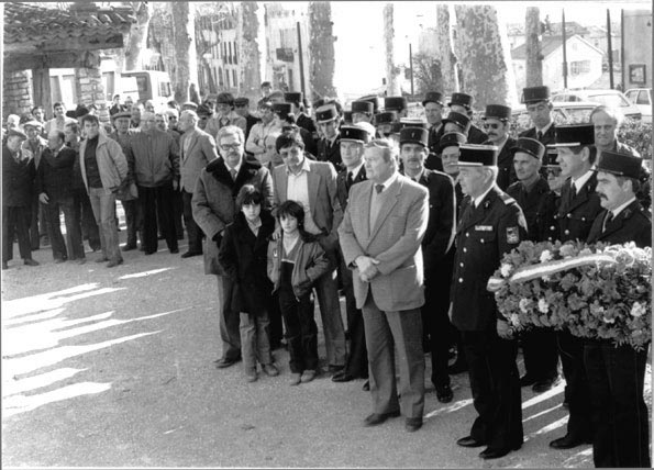 Au centre le maire André Négrel, à gauche ( lunettes et col de fourrure) Claude Cauvin