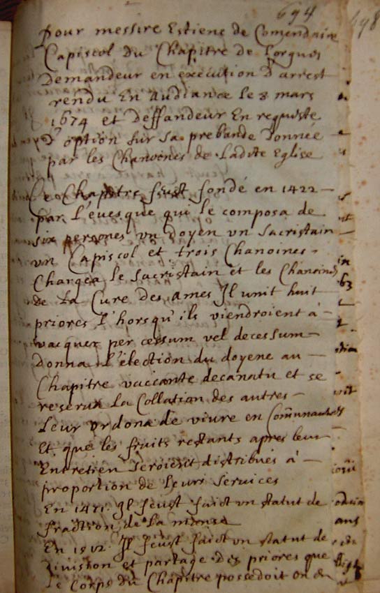 exécution d'arrest rendu en audience le 8 mars 1674 et deffandeur