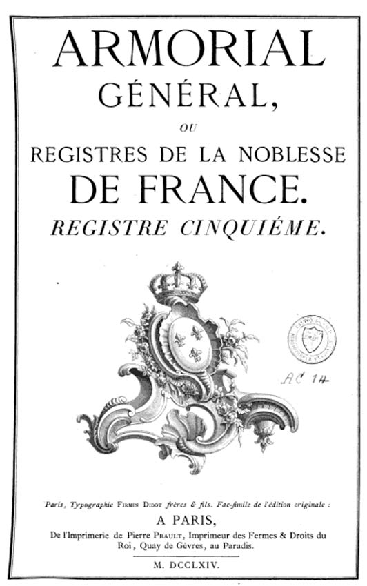 Extraits de: Armorial Général ou Registre de la Noblesse de France- 1764