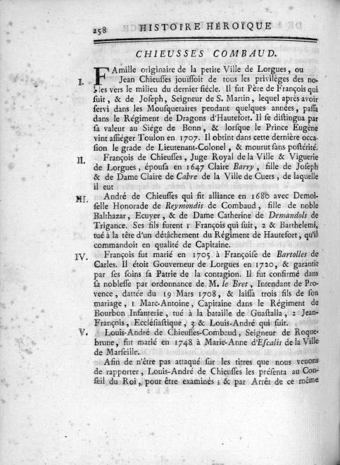 Extraits de: "Histoire Héroïque et Universelle de la Noblesse de Provence" - 1776
