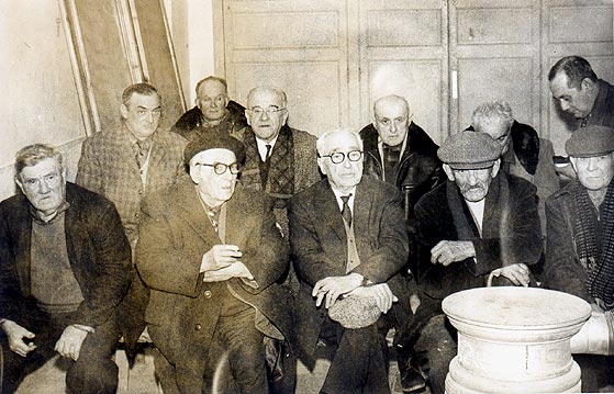 Réunion des anciens combattants autour du poële, à la mairie
