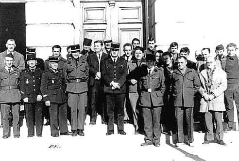 Banquet annuel des pompiers dans les années 60. Devant la mairie autour du maire André Négrel.