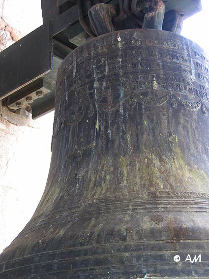guirlandes de fruits et de feuilles, une effigie de Saint -Ferréol. Inscription : " D.O.M. Laudate dominium in cymbalis jubilationis. Piae corp cer. Sodalitatis et Fidelium munificentia campanam hanc sub invocatione sancti ferreoli frexit anno Dom MDCCCXXIII " | |
