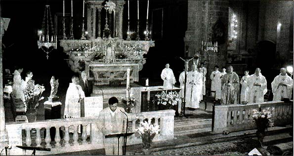1704-2004. Célébration du tricentenaire de l'église. Avec Monseigneur Dominique Rey, évêque de Fréjus, Barthélemy Mariani, maire de Lorgues et le père Yves Menjot, curé de Lorgues. |