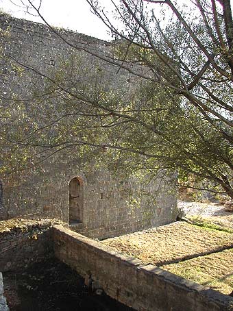 Ce bassin situé contre la façade Nord de la Chapelle et prolongé par un nymphée vouté où coule une source, correspond au socle d'un bâtiment aujourd'hui disparu, qui pouvait être le logis des Frères.