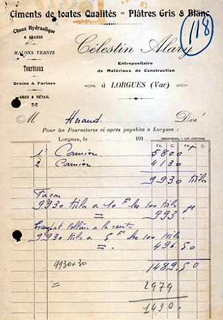 Célestin Alary. Entrepositaire de matériaux de construction.Chaux hydraulique et grasse. Malons vernis. Tourteaux. Grains et farines. Gros et détail