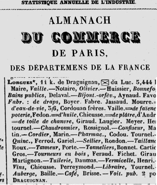 Les commerçants lorguais en 1837. Extrait de l'almanach du Commerce