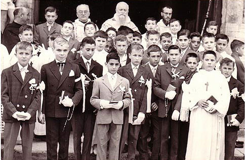 Les communiants autour du pére Jean de Mathas curé de Lorgues Le pére Pétex (en soutane noire à gauche) va lui succéder.