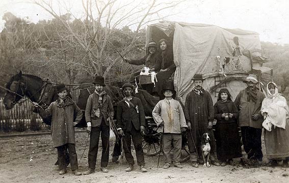 Les bohémiens, un char du Corso en 1922. Sur la voiture: Etienne Mathieu, Adeline Granito. Devant: Elie Acarisio, Joseph Grousson, Simon Gonzague, Paulin Cheillan, Louis Vincent, Cyprien Faucher, Louis Granito, Antoinette Balbo
