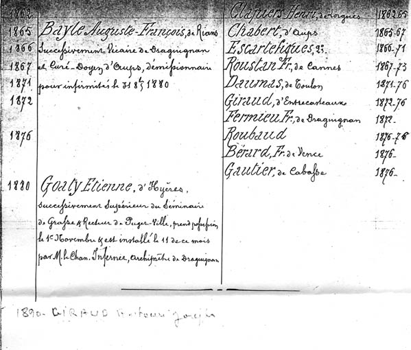 Curès de Lorgues depuis la Révolution présentation sur le site de la paroisse --->