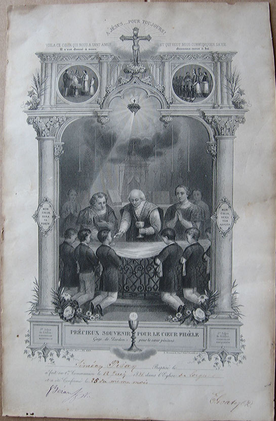 Certificat de 1ère communion et confirmation, 1881. Lorgues . Signé E. Goaty