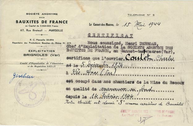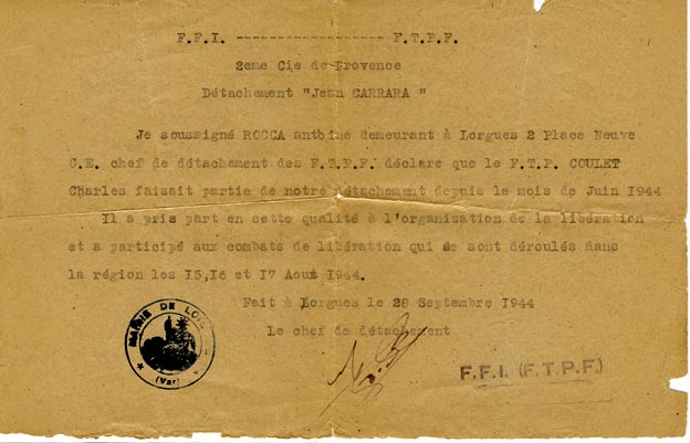 résistance ... Je souhaiterais que vous rajoutiez ces documents sur vos pages histoire et les héros de la 2 ème compagnie de Provence groupe Carrara. Merci " Sébastien TARDIF |