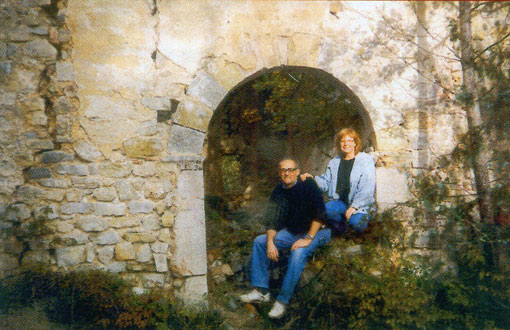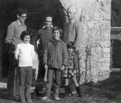 Quelques bénévoles du chantier associatif ( 1973-1981) devant la chapelle Saint-Honorat: Christian Delseray, Barthélémy Mariani, Louis Nardin, Marie-Claire, Patrick et Laurence