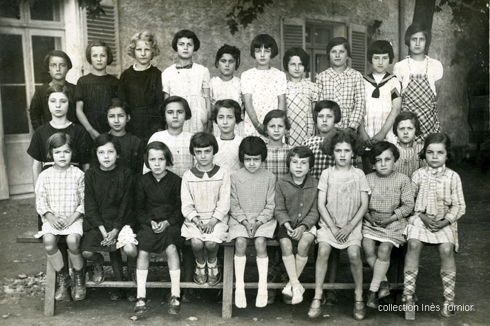 Classe de filles en 1939. Dans l'actuelle cour de la Poste