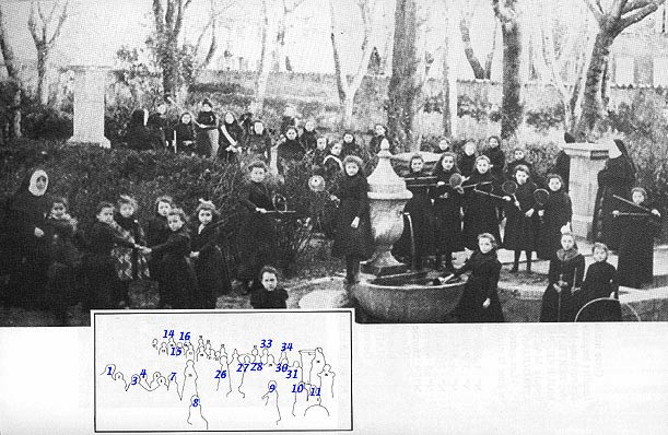 1.Soeur Félicité - 3. Pauline Rigaud - 4.Marcelle Simone - 7. Cécile Ferrari - 8. Mrie-Louise Kohler - 9. Marthe Beraud - 10. Marie-Rose Maiffret - 11. Germaine Gaiton - 14. Laurence Guigue - 15. Blanche Blanc - 16. Germaine Gool - 26. Jeanne Vian - 27. Ernestine Boyer - 28. Marie Roselly - 30 Clémence Chenal - 31. Marie-Thérèse Troin - 33. Gabrielle Castillon - 34. Marie-Louise Cordouan . Pour plus d'informations, lire : Lorgues, le Temps Retrouvé, Alain Marcel, Ed. Equinoxe 2017 |