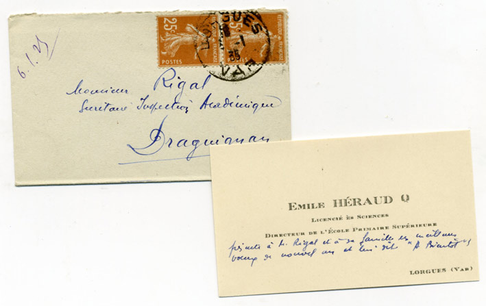 Carte de voeux envoyée par le directeur Emile Héraud en 1935