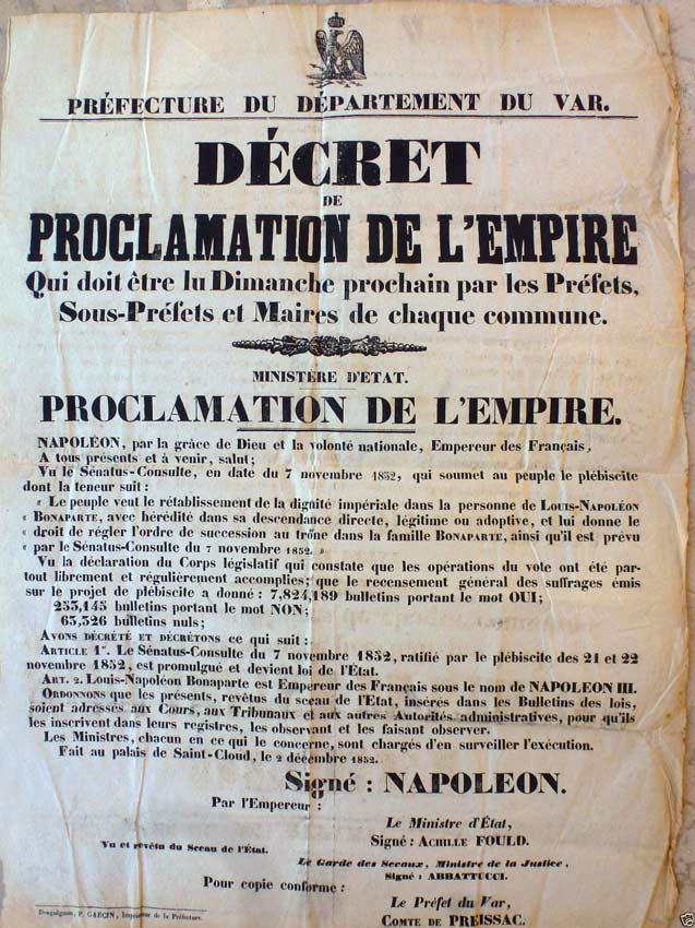 L'affiche de proclamation de l'Empire