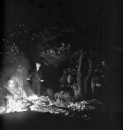 | "Feu de camp. François Robion a une voix de basse extrêmement puissante. Je sais que son ambition, il me l'a dit, était de devenir chanteur d'opéra. Amples vibrations venant du tréfonds du ventre. La vie a décidé autrement. Il regrette encore. " |