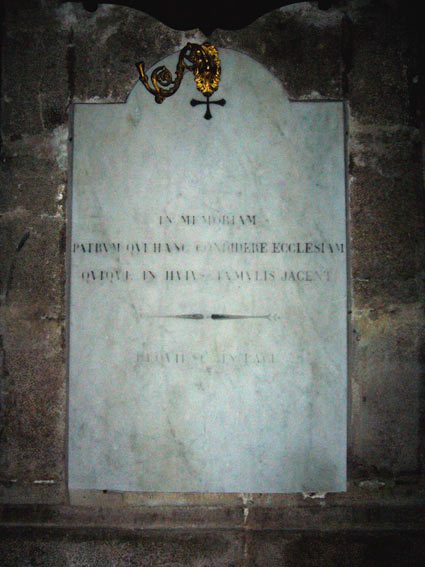 Vian. Au cours de ces travaux des caveaux contenant des ossements furent mis à jour dans la nef : une plaque est apposée sur le pilier qui se trouve en face de l'autel du Purgatoire " en mémoire de nos pères qui ont fondé cette église et qui reposent dans ces caveaux ". Parmi eux devrait se trouver le Bienheureux Guillaume, mort en odeur de sainteté, qui fut l'un des premiers religieux ayant vécu à Nd de Floriéye à Tourtour. Lorsque les moines vinrent s'installer au Thoronet, ils y transportèrent son corps et continuèrent à l'entourer de vénération. Son tombeau se trouvait en haut de la galerie ouest du cloître de l'abbaye. Il fut violé pendant la Révolution et ses ossements furent transportés dans l'église de Lorgues. Des membres de certaines familles de notables, comme les Chieusse, reposaient aussi dans l'église. |
