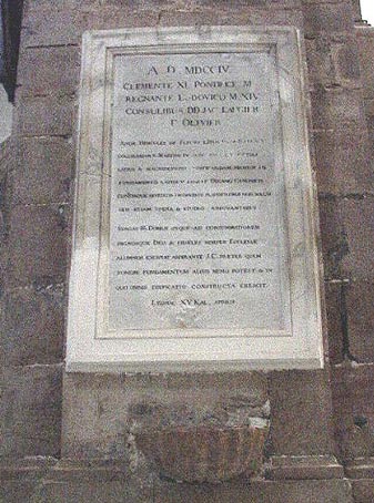 Saint-Martin pour la bâtir plus vaste et plus magnifique. Sur les fondations, il en posa la première pierre avec le doyen du chapitre canonial, tandis que toutes les autorités de la ville non seulement encourageaient mais aussi apportaient leur travail et leurs soins. Que se maintienne cette trés sainte demeure jusqu'a la fin des temps, qu'elle reçoive des fidèles toujours dignes de Dieu et de son Eglise, avec la grâce de JC en dehors de qui personne ne peut poser d'autres fbndements et par qui toute oeuvre construite trouve sa prospérité ". |