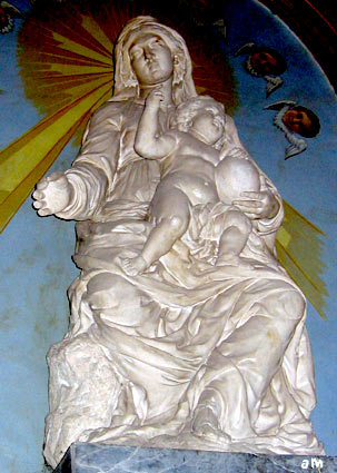 Statue en marbre de la Vierge à l'Enfant,( attribuée parfois à l'école de Pierre Puget), 1694). Elle fut transférée en 1807 de l'ancienne abbaye du Thoronet alors désafectée, réparée par le sculpteur marseillais Dauphin qui lui refit un bras et entourée d'une grille en fer, oeuvre du serrurier Sauzède. Elle a été classée le 6 décembre 1906. | |