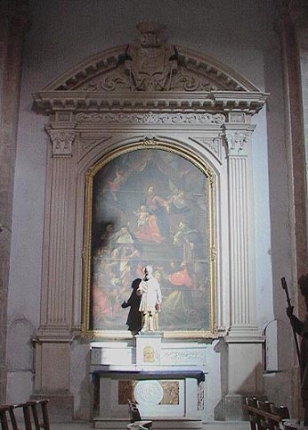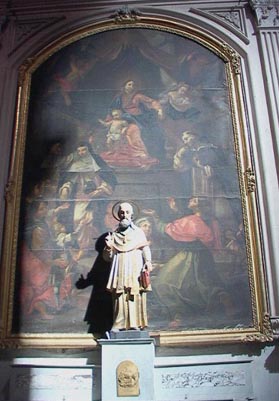 Toile du XVIIIe où l'on reconnait Saint Dominique (chien et cierge) et Sainte Catherine de Sienne. Statue de Saint François de Sales.