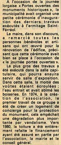 Collection Éliane MATHEVET Article Sept 1989 . Journée "Portes ouvertes monuments historiques"