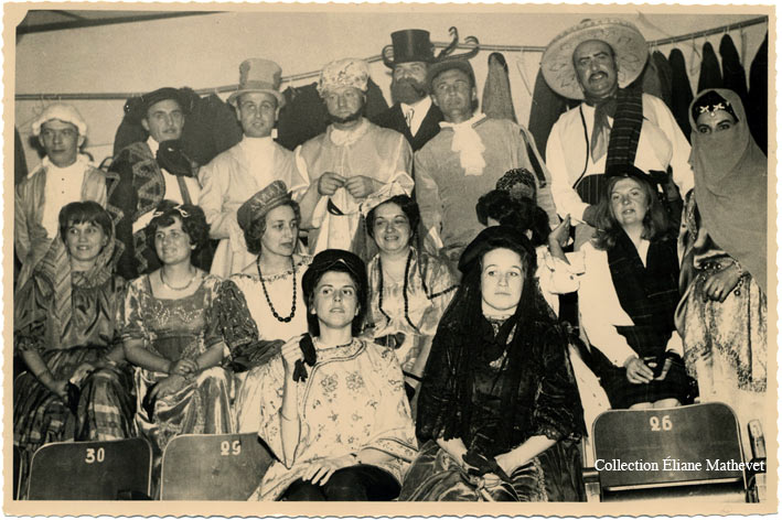 " Le comité des fêtes en 1965 1er rang: Lucienne Vanaker, Anne-Marie Borsi. 2éme rang: Mmes Roux, Mariani, ? , Lulu Percival, Janet, Yolande Gourrin 3 ème rang: André Roux, Roux, Mariani, Percival, Faluomi, Jacky Mathevet "