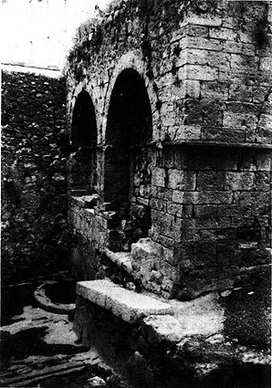 | C'est alors que fut creusé le sol et déchaussée la face sud de la fontaine. La cuvette de recueil y fut transportée et deux conduits furent forés à 1 m. 50 au dessous du niveau de l' orifice d' origine . Ils fournissent encore l' eau qui, par une rigole, gagne le lavoir ( 15 ). L' intérêt de ces textes est de rendre compte du caractère secondaire des modifications de l'environnement immédiat et de pouvoir les éliminer à l' étude du monument. | |