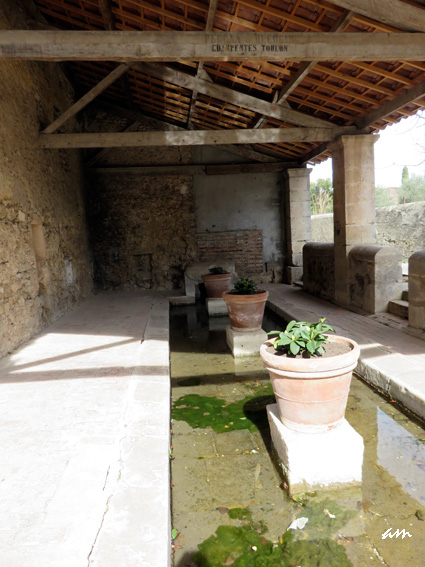 Le lavoir est constitué d'un bassin central encadré de chaque côté d'une pierre de lavage sur laquelle s'installaient les lavandières, à genoux dans une caisse en bois.