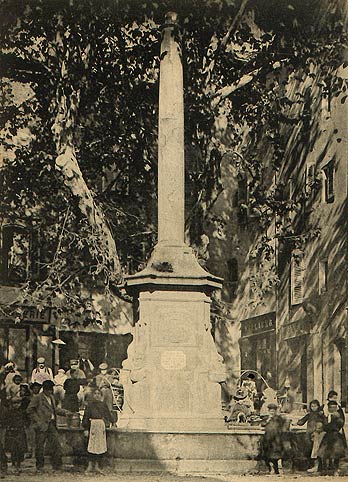 ![]() La fontaine en 1905 . On aperçoit une plaque sur laquelle était inscrite: " Par orde de M. le Maire il est défendu de faire boire tous animaux attelés sous peine d'amende" |