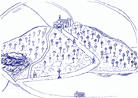 Dessin du 18 éme siècle indiquant l'emplacement d'un four à chaux dans la colline de St-Ferréol |