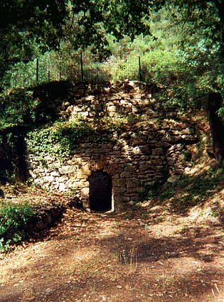 15 m3. Les fours temporaires vus à Lorgues et notamment à Saint-Ferréol sont d'un diamètre beaucoup plus grand allant jusqu'à 5 m. Le four est entièrement bâti en moëllons. Un chemin d'accés au sommet du four est encore visible. | |