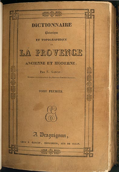 Extraits du Dictionnaire Historique et Topographique de La Provence Ancienne et Moderne par E. Garcin . Membre correspondant de plusieurs Sociètés Savantes. 1835