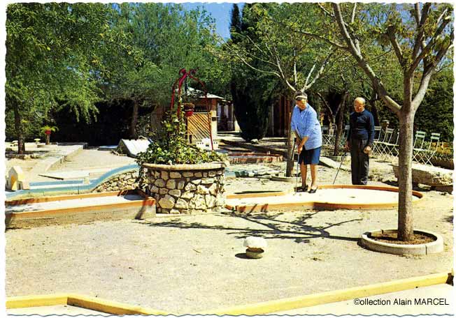 M. et Mme Chiron, acheteurs de l'ancienne gare, dans leur golf miniature
