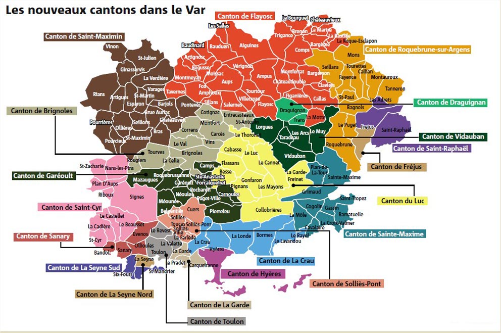 Préfecture : Toulon. 3 arrondissements. 23 cantons. 153 communes