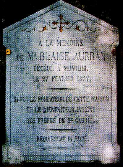 Plaque à la mémoire de Blaise Auran, apposée contre le mur dans le jardin.