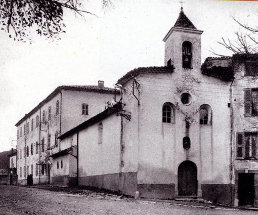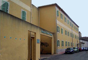 C'est donc là ( ruelle de l'Église et place de l'Église ) que se trouvait le " vieil hospice " signalé comme tel dans le cadastre de 1578. On le retrouve identique dans les registres cadastraux de 1659 et 1697, toujours propriété publique exonérée d'impôts et taxes (allivrement). La construction de la collégiale Saint-Martin bouleverse l'existence de l'établissement qu'il faut détruire. L'hébergement des pensionnaires subit des solutions provisoires, notamment dans la Maison Commune ( ancienne mairie) . Puis en 1727, la communauté acheta les terrains Mourre. | ||