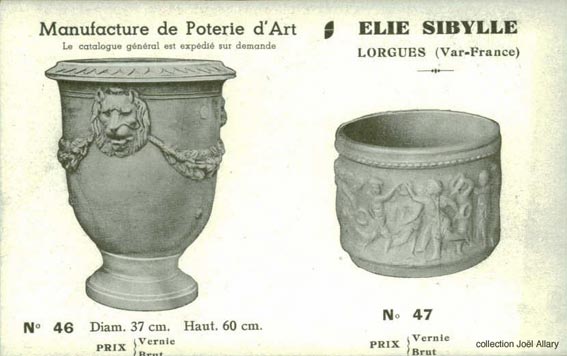 Produits de la fabrique de céramique Elie Sybille
