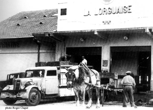 En voiture ou à cheval, les caisses de raisin sont apportées à la cave coopérative (La Lorguaise , créée en 1922 )
