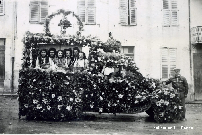 "M. Gardon et son corbillard décoré pour le corso. Mardi Gras 18-2-47 sous la pluie"